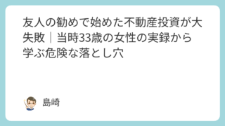40代男性 友人の勧めで始めた不動産投資が大失敗|当時33歳の女性の実録から学ぶ危険な落とし穴